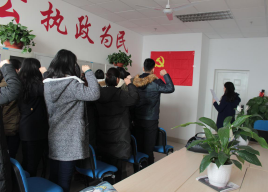 2017年1月12日,刚刚成立的德赢winac米兰学生党支部在学院党员活动室举行了第一次入党宣誓活动。活动由学生党支部书记江丰沛主持,支部内4名正式党员,14名预备党员参加此次宣誓活动。