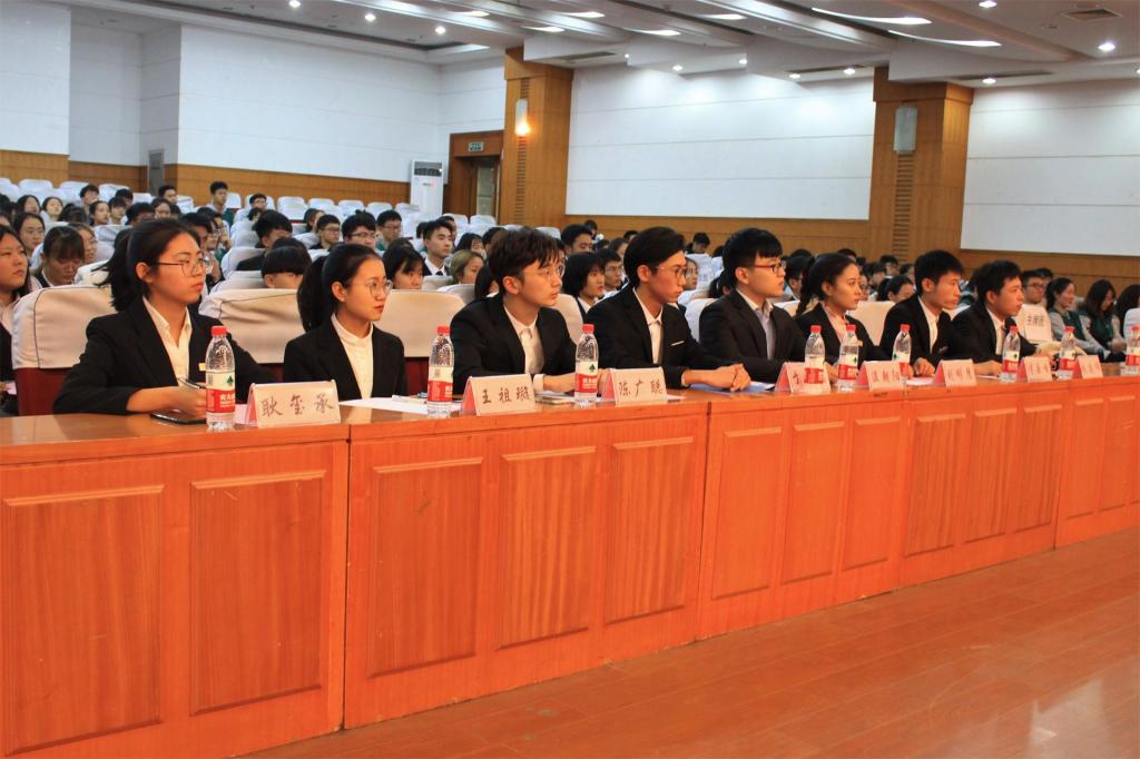 大会在校歌《你我同行》中拉开了序幕,在场人员共同观看了学生会成立大会视频,视频中的一幕幕画面向大家展示着我院学生会成立以来的进步与成长。会议伊始团委书记牛帆老师宣读了学院第五届学生会主席部长团名单。随后,学院党委副书记、副院长孙翔玲老师发表讲话,他在对新同学的加入表示欢迎和祝贺的同时,也对同学们提出了以下几点希望:一、全心全意为学生服务。学生会成立的目的就是服务学生,奉献自己,学生会成员应当是服务者,而不是带有官僚气息的管理者。二、严于律己,宽以待人。作为学生会的一员,学生会成员必须做好模范带头作用,争当学生的典范,同时,要有宽大的胸怀,在日常学习和工作中时刻体现自己的风度与道德素养。三、正确处理工作与学习的关系。身为学生,学习是重中之重,但身为学生会的一员,工作也是必不可缺的一环,因此,需要正确处理工作与学习的关系,追求全面发展。四、心怀大志。青年要立志做大事,不要立志做大官,学生是青春的体现,为了不辜负青春,我们需要志存高远,并为之奋斗,体现当代大学生的青春朝气。