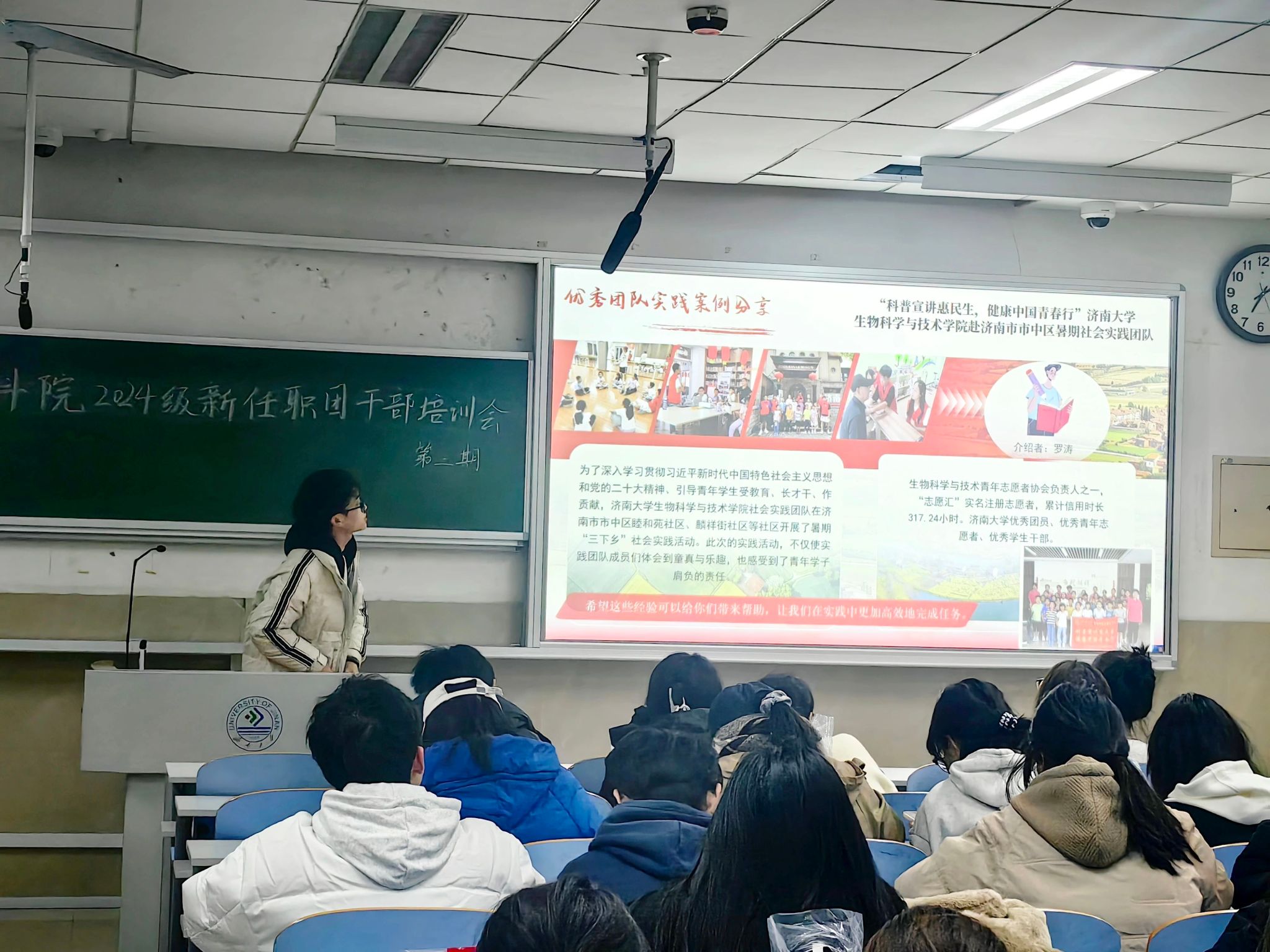 之后,“青萌”科普志愿服务队队长李嘉辉讲解了志愿服务机制建设、志愿服务项目策划、志愿服务组织建设等内容,并邀请优秀志愿者做经验交流,分享志愿服务经历,让学生团干部们对志愿服务有了更深刻的理解。