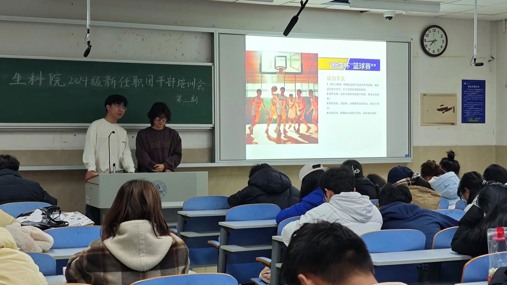 最后,文艺部副部长李冉博和体育部副部长岳同鑫共同进行了学院文化工作培训,他们以学院文化品牌活动为参照,结合学院实际,展开了系列组织发动、宣传引导、协调开展、总结提升等方面的能力培训。