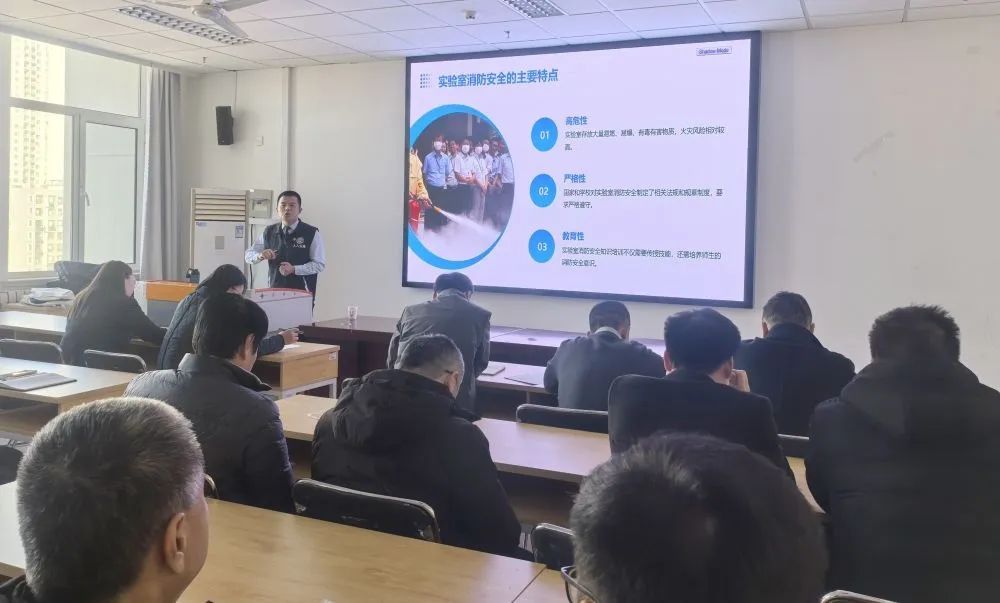 毕杰刚以“全民安全 消防至上”为主题作消防安全专题讲座。他基于实验室消防安全的特点、危险性,结合典型案例,重点讲授了消防器材的使用方法、火灾处置与逃生知识、消防安全的“四个能力”,进一步增强了学院教师消防安全意识,提高了火灾应急处置和自救互救能力。