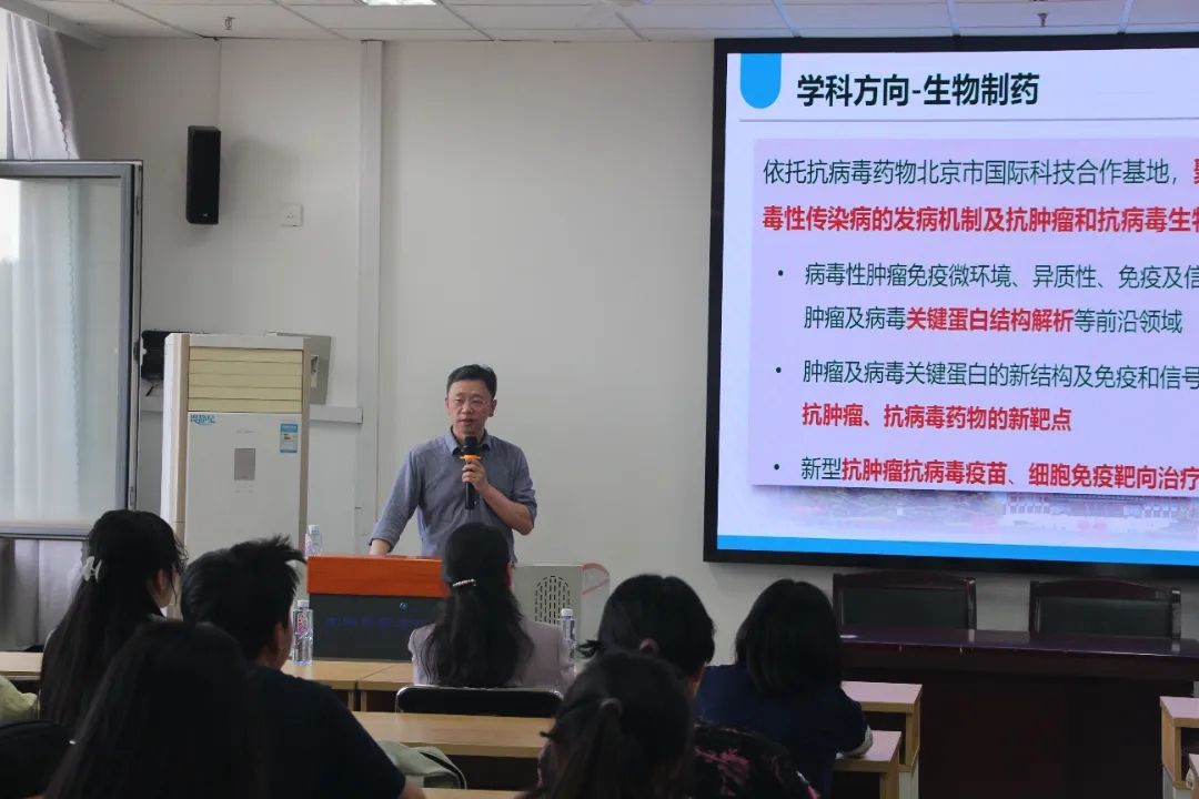活动伊始,盛望教授播放了北京工业大学招生宣传片,介绍了学校发展历程、学科特色和研究生招生基本情况。他谈到,北京工业大学是全国第一批211建设高校,拥有首批双一流建设学科。随后,他着重介绍了学院学位点设置、学科研究方向与师资情况,以及基础设施和生活保障相关情况,并结合2025年招生情况详细解读了招生政策,提出了报考建议。