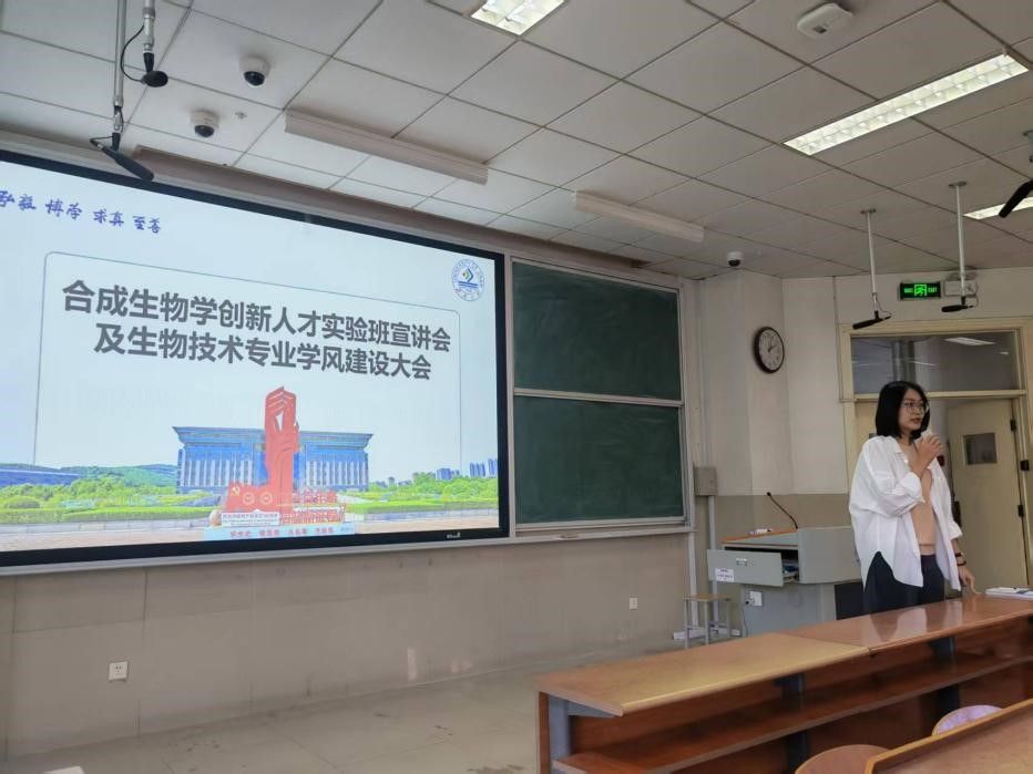 为进一步加强学风建设,推动拔尖创新人才培养,激发学生科研热情,4月28日,德赢winac米兰举办合成生物学创新人才实验班(以下简称“创新班”)宣讲会暨生物技术专业学风建设大会。学院教工第二党支部成员、生物技术专业相关负责教师,2024级全体学生参加活动。活动由2024级本科生辅导员冯昕主持。