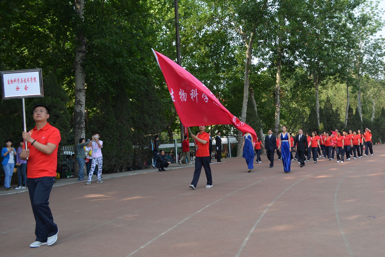 4月29日上午,学校运动场锣鼓喧天,旌旗飘扬,德赢ac米兰官方合作2014年田径运动会在这里隆重开幕。我院教师代表队迈着整齐的步伐,挥舞着印有学院标识的旗帜参加了入场式,展现了我院积极向上的良好风貌。