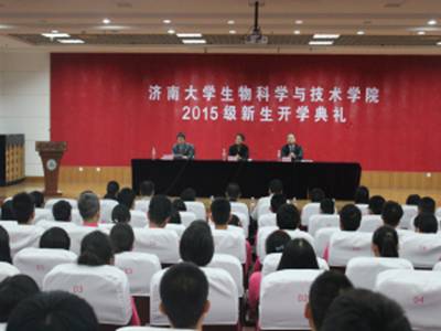 首先,本院副院长何文兴宣读对新生的欢迎辞并宣布典礼正式开始,伴随着大家热烈的掌声,院长黄加栋上台讲话,他劝诫新生不要忘记学习这个第一要务,他还引用歌曲《You Raise Me Up》中的歌词,勉励新生珍惜韶华,追求卓越。新生听讲十分认真,深受启发。随后,教师代表韩璐发言,韩璐老师再次向新生表示欢迎并表示非常欢迎新生及时主动的和老师们进行沟通交流。她承诺,学办全体老师一定会竭诚为同学们服务,同时也希望同学们达到老师的要求,艰苦奋斗热爱学习。之后新老生代表分别发言,老生代表段晓怡同学鼓励新生要及时转变角色,大胆展现自己的才华。新生代表岳梅同学感恩学校学院的孜孜教诲,表达了对大学四年的美好憧憬,全体新生将时刻铭记校训弘毅,博学,求真,至善,努力做到脚踏实地,艰苦奋斗,追求卓越,全面发展。最后,由本院党委书记陈卫东做总结陈词,他感慨地说“生科院自从在2013年最后一天成立开始,我就期望生科院的每位同学都能够得到最好的教育和发展,如今,生科院有足够强大的师资力量,有足够优秀的同学们,这个愿望终于可以实现。”现场响起阵阵响声,大家都十分受鼓舞。一位新生表示十分荣幸成为了济大的“生科人”。典礼尾声,副院长何文兴宣读了闭幕辞。至此生科院2015级新生开学典礼圆满结束。
