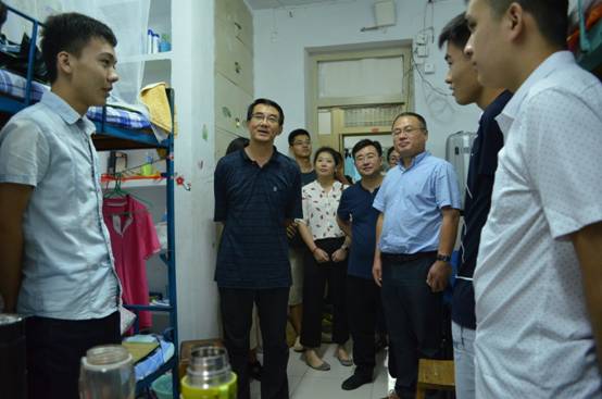 9月12日晚,德赢winac米兰党委书记陈卫东,院长黄加栋,党委副书记、副院长孙翔玲,学办主任江丰沛以及2016级新生辅导员牛帆,先后到学34宿舍和学3宿舍走访慰问2016级新生。