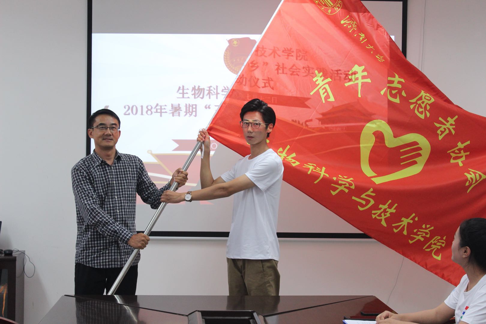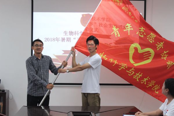最后,学院党委书记陈卫东向“三下乡”实践团队授旗,团队成员从陈书记手中接过庄严的旗帜的同时,也担负起了一份沉甸甸的责任,至此,出征仪式圆满结束。