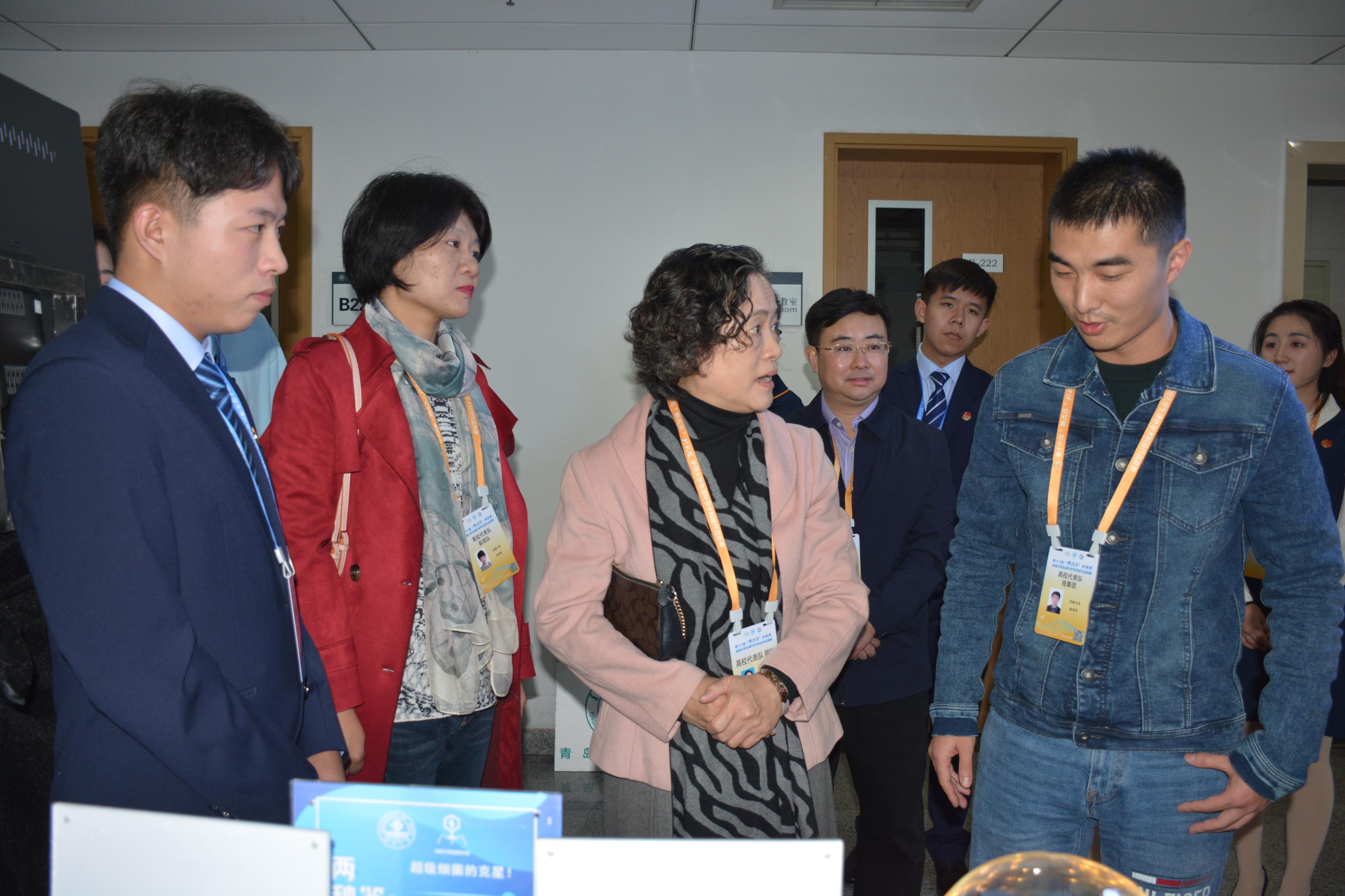 优异成绩的取得是学校、学院领导长期以来高度重视和关心学生科技创新工作的结果,也是学院师生奋勇拼搏、积极投身科技创新工作的硕果。比赛期间,学校党委副书记张硕秋,校团委书记孙菲菲,学院党委书记朱帮全,校团委副书记胡春毅,学院党委副书记、副院长孙翔玲到比赛展馆为参赛团队进行指导并加油鼓劲。参赛团队成员为该作品进行了为期一年半的准备和训练,从作品内容、PPT制作、视频编辑、现场答辩、展馆布展等方面反复讨论并修改,不断使作品进步完善。