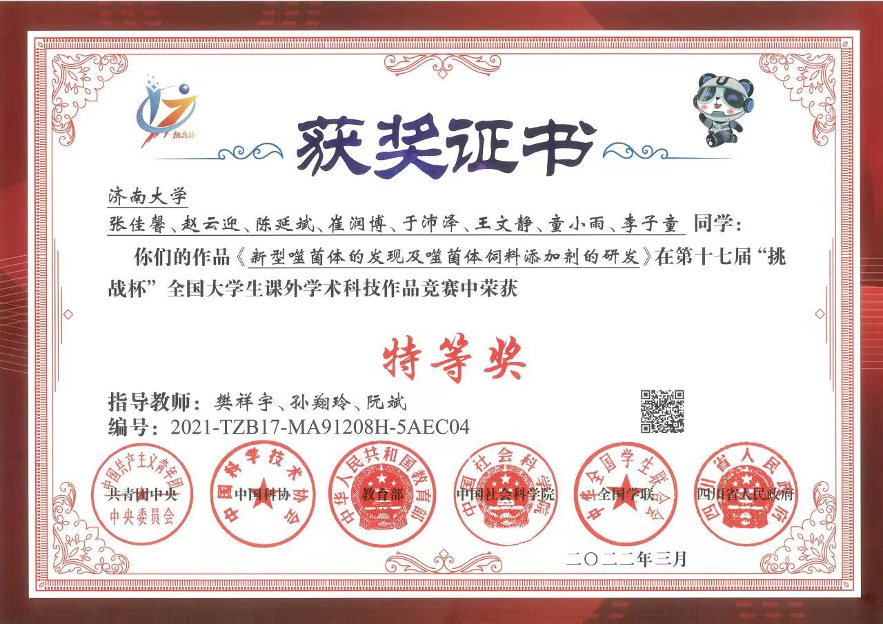 科创育人成果丰硕,赛教融合再创佳绩。学院荣获全国大学生生命科学竞赛(2022,创新创业类)“优秀组织单位”,获国家级“特等奖”两项,分别是第十七届“挑战杯”全国大学生课外学术科技作品竞赛国赛特等奖和全国大学生生命科学竞赛(2022,创新创业类)特等奖,相关新闻先后被大众日报、搜狐网、新浪网、山东教育第一媒体和学校官网纷纷转载报道。举办各级各类科创专题培训会、宣讲会、青春创新创业论坛10余次,学院团委书记崔爱萍为化学化工学院、水利与环境学院、体育学院3个兄弟学院做“科创筑新梦,青春向未来”专题讲座,通过新媒体平台发布“科创Zone”,宣传科创赛事,讲解科创知识。此外,在第十三届“挑战杯”山东省大学生创业计划竞赛中获得金奖3项;在第八届山东省“互联网+”大学生创新创业大赛中获得主赛道金奖1项、银奖1项,产业命题赛道金奖1项;在第九届山东省科技创新大赛中获二等奖1项、三等奖1项;在全国大学生生命科学竞赛(2022,创新创业类)中获一等奖2项、二等奖1项、三等奖3项;在全国大学生生命科学竞赛(2022,创新创业类)山东省赛区决赛中获得一等奖1项、二等奖2项、三等奖1项;在全国大学生生命科学竞赛(2022,科学探究类)中获得三等奖4项;在全国大学生生命科学竞赛(2022,科学探究类)山东省赛区决赛中获得一等奖1项、二等奖3项、三等奖3项;在第十四届山东省大学生科技节-山东省大学生生物学大赛中获得一等奖4项、二等奖3项、三等奖6项。本年度共获大学生科创省级及以上奖励的奖项44项,获奖学生254人次。