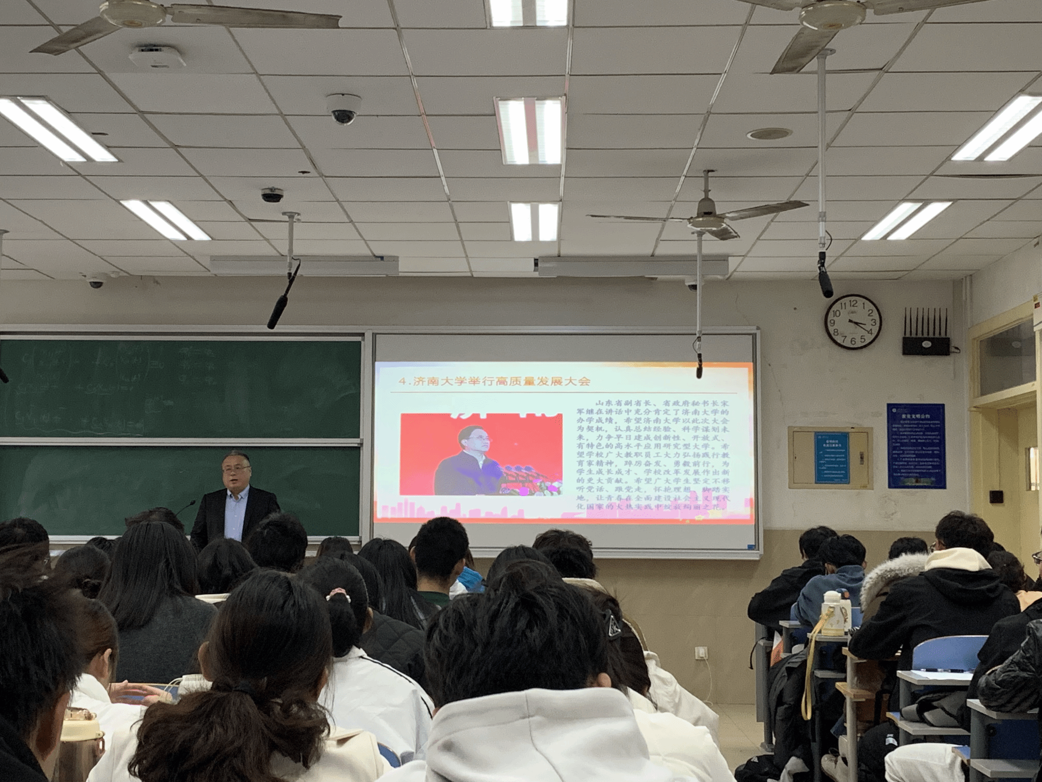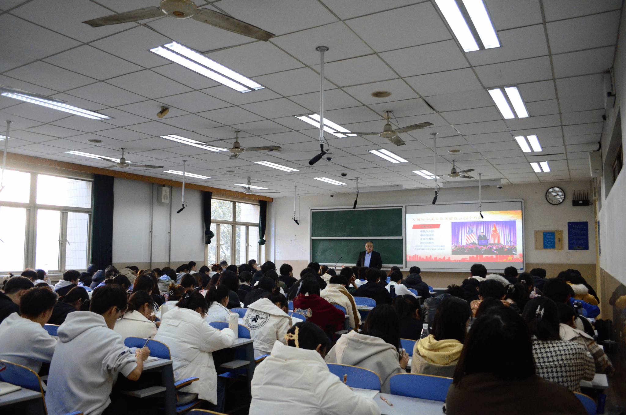 为深入学习宣传贯彻习近平总书记近期重要讲话精神,深入开展主题教育,更好地落实立德树人根本任务,11月23日,德赢ac米兰官方合作党委常委、副校长黄加栋为德赢winac米兰生物2201班、生药2301班、生药2302班学生讲授专题《形式与政策》课,学院党政领导班子成员与学生们一同参加了本次课程。