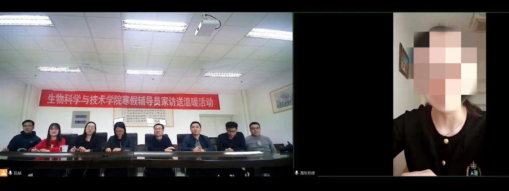 学院持续关注已毕业学生的成长和发展情况,让校友获得来自母校关爱。本次线上走访活动中,学院对曾经在2018年寒假辅导员家访活动中走访的2014级生物技术专业孙同学进行了回访。家庭暂时的经济困难没能阻挡孙同学追逐梦想的道路,在校期间学习努力刻苦、成绩优秀,多次获得奖学金,并顺利考取山东大学攻读硕士研究生。目前孙同学在西安一家上市公司医药研发部工作。在视频连线过程中,孙同学对母校的培养、关心和帮助表示由衷感谢,并介绍了毕业后的学习工作生活情况。学院领导和老师对孙同学取得的成绩表示祝贺和赞扬,勉励其发挥学校人才培养的特色,利用良好的平台,努力工作;期待未来与其开展相关领域科研合作;希望常回母校看看,与师生分享成长与收获。孙同学听后备受鼓舞,表示自己一定不辜负学院领导、老师的期望,在工作中继续学习,努力奋斗,以更加优异的成绩回报母校。