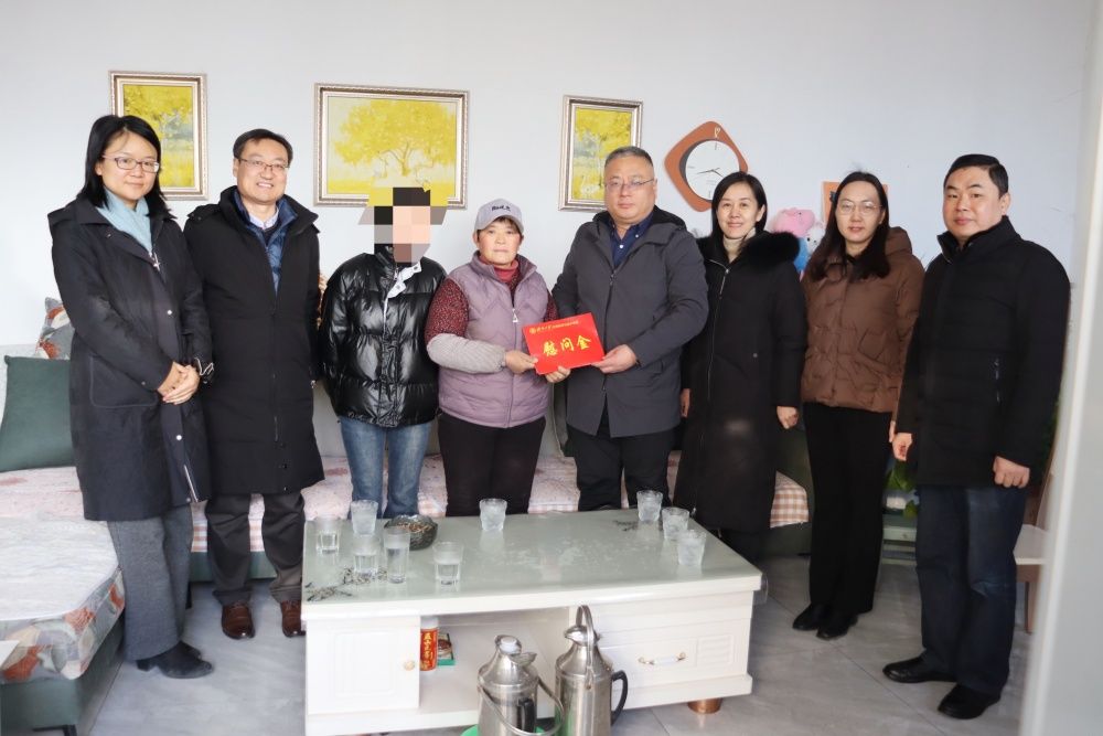 黄加栋代表学校向学生家长送上慰问金和慰问品,转达了学校的关怀及祝福,勉励学生一定要珍惜求学时光,刻苦努力学习,以优异的成绩回报家庭和学校的关爱。家长表示,十分感谢学校一直以来对孩子学业上的支持和生活上的关心,一定会配合学校工作,共同把学生培养成才。