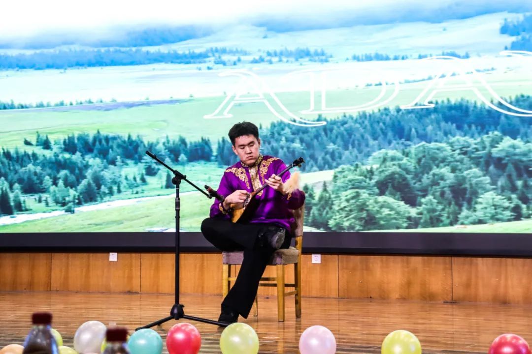 生物2402班叶德力•那斯哈提同学带来的冬不拉演奏把新疆之美融入了音符,带领现场观众感受异域风情,领略别样文化魅力。